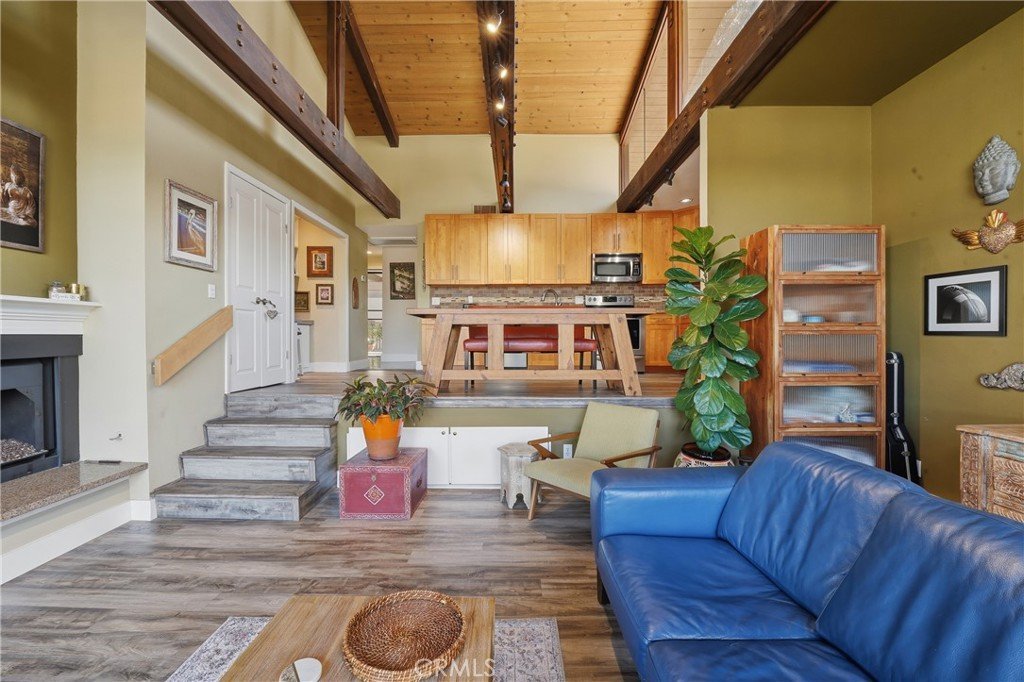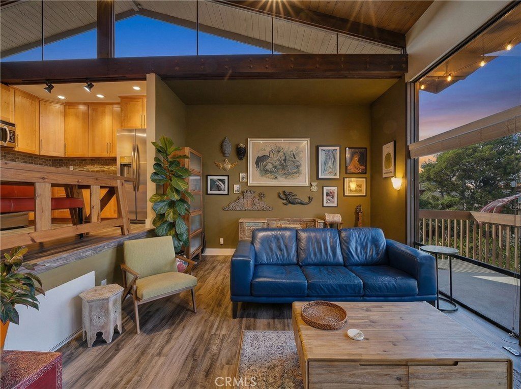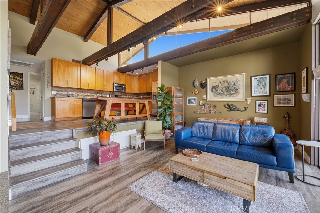 Inside, floor-to-ceiling windows and vaulted, beamed ceilings create an open, airy feel while maximizing the waterfront outlook. The home has been beautifully updated throughout, offering a move-in-ready environment with a refined yet relaxed coastal aesthetic.
