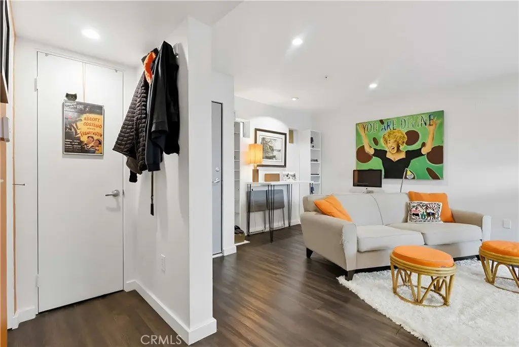 Discover your urban oasis at The Lofts on 4th, perfectly situated in the vibrant East Village. This lower-level loft offers the ideal blend of cozy comfort and modern design. Step inside to find a thoughtfully designed layout that makes smart use of space, featuring a nice sized living area with beautiful French doors that open onto a charming private patio, seamlessly blending indoor and outdoor living.Enjoy the rich, dark commercial-grade vinyl flooring throughout, complemented by recessed lighting that highlights your favorite artwork and adds a touch of sophistication. The kitchen, bedroom, and bathroom are all designed for comfort and functionality, and you’ll appreciate the convenience of a stackable washer and dryer.Just four blocks from the beach, this quiet interior unit is perfectly tucked away from the lively downtown energy; offering peace and privacy while keeping you just steps from the best restaurants, shops, and entertainment. The serene common area features palm trees and foliage in oversized planters, bringing a refreshing touch of greenery to the modern surroundings.Head up to the rooftop deck for summer barbecues and take in beautiful views that stretch for miles. From here, you’re a short stroll to the scenic shoreline bike path and minutes from Retro Row and downtown’s eclectic mix of eateries, boutiques, and nightlife.Opportunities to own in The Lofts on 4th are rare; come experience stylish coastal living where city energy meets seaside tranquility.