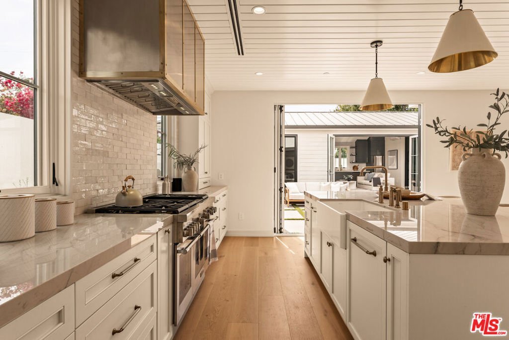 Experience the pinnacle of coastal living in this newly constructed, custom California Coastal estate an exceptional collaboration between Live Inspired Homes, JRD Construction, and renowned coastal designer Molly Waggoner. Thoughtfully conceived as a private compound, this residence evokes the elegance of Montecito with a distinctly modern sensibility. A herringbone brick walkway leads through manicured grounds to the 3,400 sq ft main residence, where high ceilings, abundant natural light, and refined architectural elements establish a sense of both scale and serenity. Each space has been curated by Waggoner, whose two decades of design expertise are reflected in every hand-selected finish - from the artisanal tilework and wide-plank hardwood floors to the tongue-and-groove ceilings and custom wall treatments. The dramatic stone facade wrapping the entry hall introduces a warm, textural sophistication that continues throughout this exceptional home. The central kitchen offers the perfect balance of form and function. Anchored by a substantial center island, this space features Thermador appliances, a custom designed hood with brass details and an expansive walk-in pantry outfitted with custom built-in cabinetry. Designed with both entertaining and everyday living in mind, it opens seamlessly to the home's main living areas, creating a fluid, sunlit space where gatherings unfold with ease. The main residence offers four ensuite bedrooms and five baths, including a versatile first-floor suite that opens to a serene patio - ideal for guests or a tranquil home office. Upstairs, a central family lounge connects three additional bedrooms, each with its own exquisitely tiled ensuite bath and custom closets. The primary suite overlooks the lush backyard retreat and features a private balcony, oversized walk-in closet, and spa-like bath with soaking tub and multi-head shower. Also on this level, a lavish utility room combines elegance with practicality, featuring custom cabinetry, abundant built-in storage, and a dedicated sink, elevating daily routines with refined ease. Beyond the interiors, an extraordinary outdoor sanctuary awaits. A sunlit pool with baja shelf, infinity-edge spa, and a fully outfitted outdoor BBQ kitchen are framed by an expansive patio and elevated deck - merging the best of resort and residential living. The pool gracefully links the main residence to a fully equipped 650 sq ft ADU, complete with a great room area, private bedroom and bath, full kitchen, laundry, office nook, and an outdoor pool bathroom, offering exceptional versatility and opportunity. A bespoke mudroom and direct-access two-car garage complete the home's thoughtful layout. Set within a close-knit, highly desirable neighborhood with premier access to top-tier schools, the beach, golf, tennis, shopping, dining, and LAX, this estate is a rare opportunity to live beautifully, live effortlessly, and live inspired.