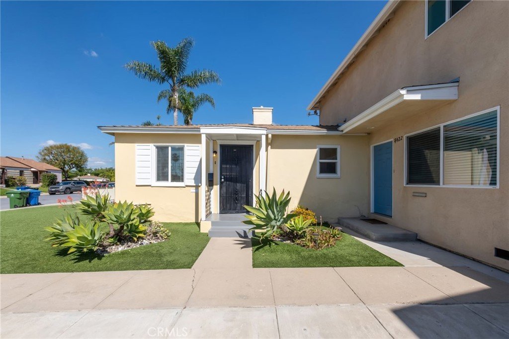 Back Unit (8422): Approx. 1,500 sq ft two-story residence, fully rebuilt in 2017. 3 bedrooms, 3.5 baths, including en-suite bathrooms, open living area, upgraded kitchen with quartz counters and full appliance suite, hardwood floors, central heat, in-unit laundry, gated driveway, detached garage, and a private backyard with citrus trees.