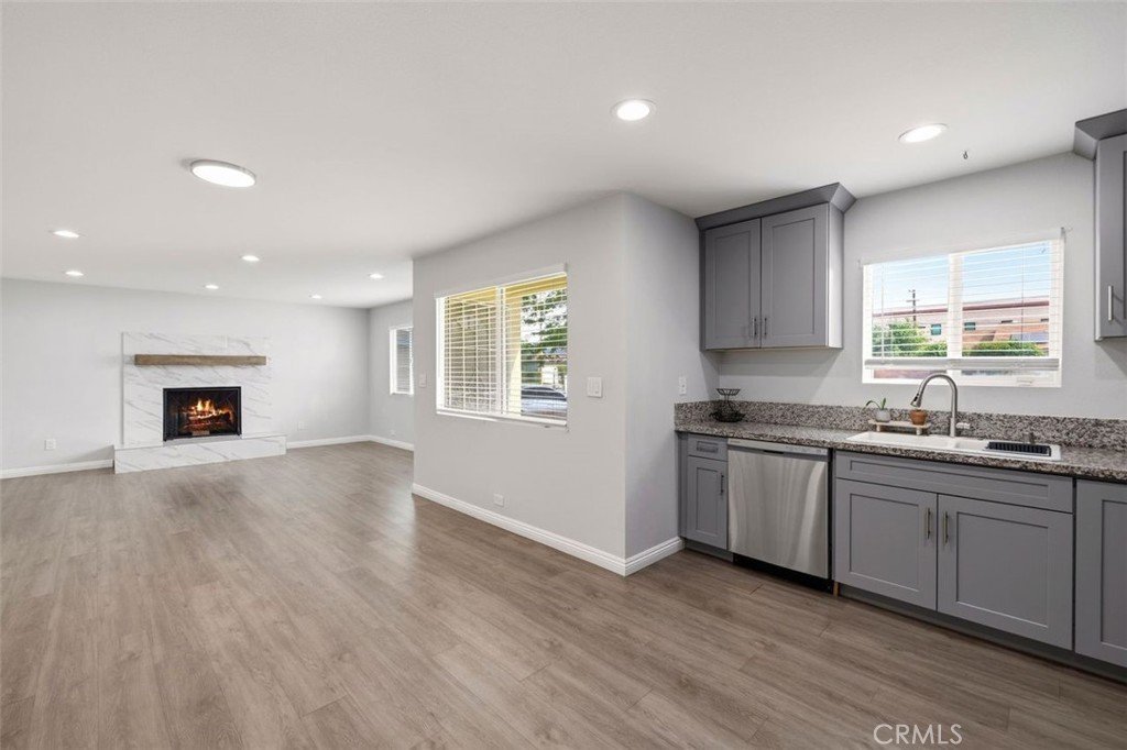 Single Story ranch style home with sparkling pool and spa ready for summer, rare opportunity the home was redone in 2021 to new, park like front yard with grand shade tree, enter into your great room with a center piece fireplace with tile surround open to informal dining area and large newer kitchen with grey shaker style cabinets and granite counter tops, stainless steel appliances, most of the flooring is a grey laminate, large primary suite with attached primary bathroom with newer vanity with granite counters and tile tub and shower combo, back yard is for entertaining, large covered patio overlooking a pool and spa, side yard has imitation grass no water needed, green all year, bed 2 & 3 have laminate floors and hall bath has a newer vanity with granite, and tub/shower combo, laundry hook ups, two car garage, home was redone in 2021, new roof, windows, kitchen, bathrooms, flooring, AC & Heat, water heater, garage door, call agent Adam for more info, run don't walk this homes a winner.