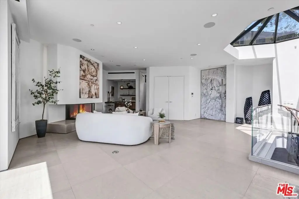 Welcome to modern luxury perched in the iconic Hollywood Hills! This newly completed contemporary masterpiece offers, featuring 4 bedrooms, 5 baths, and breathtaking panoramic views of Los Angeles and the Downtown skyline. Designed for seamless entertaining and everyday comfort, the home showcases a chef's kitchen equipped with top-of-the-line Wolf appliances, Italian tile accents, and sleek hardwood floors throughout. A stunning architectural waterfall cascades through the center of the home, creating a serene focal point and elevating the modern aesthetic. Enjoy an unparalleled entertainment experience with a dedicated media room, bar room, integrated surround sound system, and smart home technology controlling lighting, music, and climate. Luxurious spa-inspired baths include a steam shower for ultimate relaxation. Two expansive decks capture sweeping city views, while the exceptionally rare, flat 2,500 sq ft backyard provides valuable usable space perfect for outdoor entertaining, lounging, or the addition of a pool to complete your personal oasis. Additional highlights include a versatile guest house above the garage, ideal for visitors, extended family, or creative use. Parking includes a two-car garage plus a carport for added convenience. Perfectly located north of the Sunset Strip and moments from the vibrant energy of the Comedy Store, world-class dining, nightlife, and Runyon Canyon hiking trails, this Hollywood gem delivers the quintessential LA lifestyle.