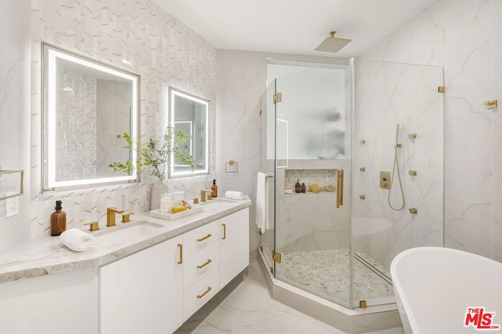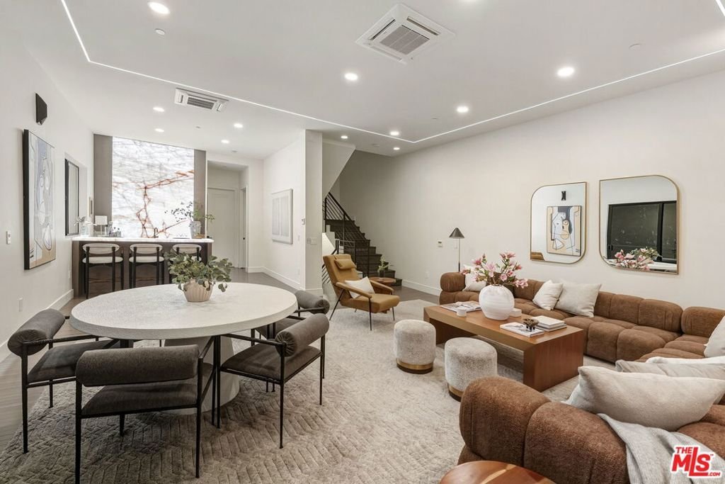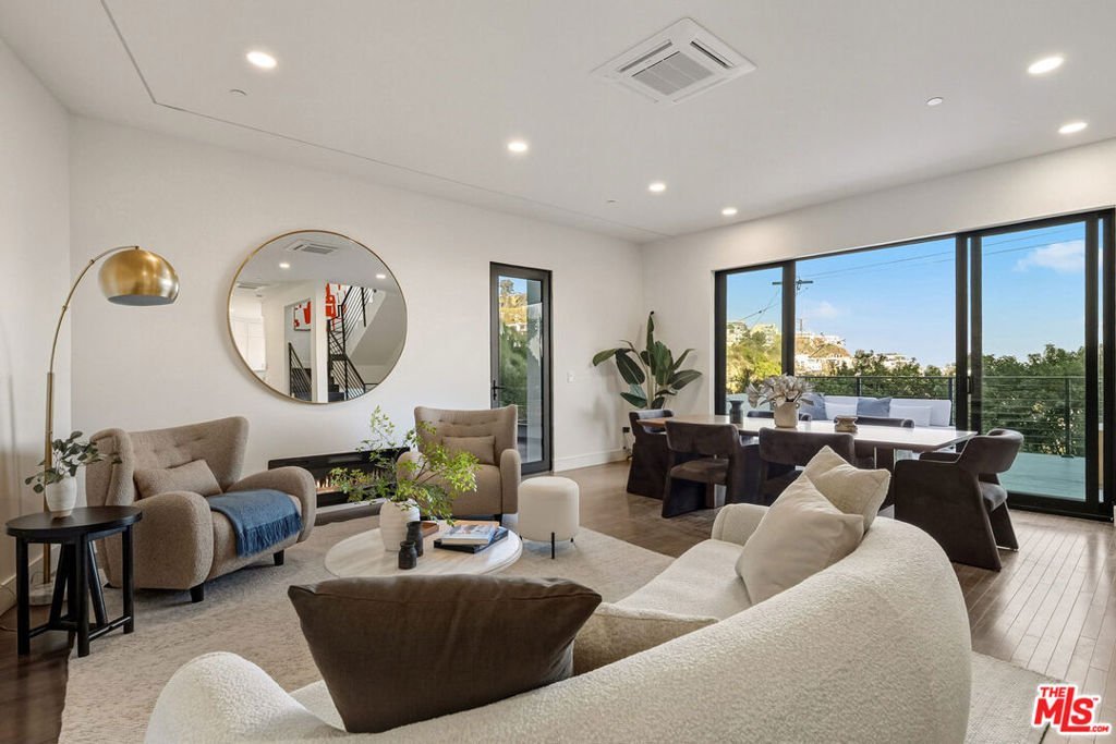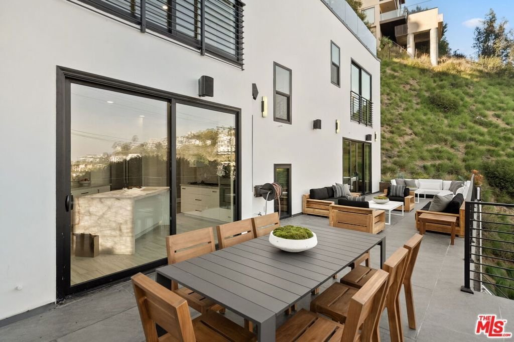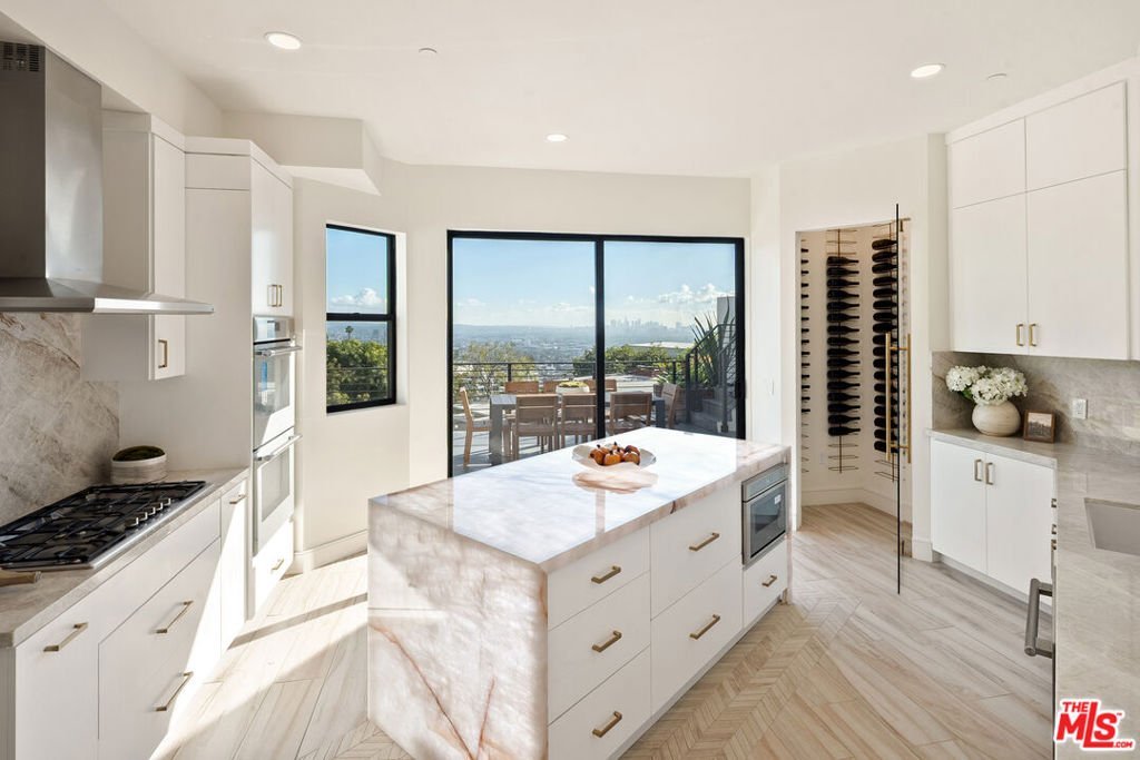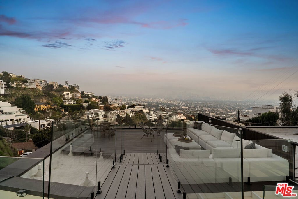 Discover the ultimate in contemporary Los Angeles luxury in this new construction home, completed in 2025 and situated in a prime Sunset Strip location favored by celebrities. This stunning residence seamlessly blends modern sophistication with unparalleled comfort, offering an exceptional lifestyle opportunity along with breathtaking city views. This brand new home, which has never been lived in, provides approximately 3,371 square feet of thoughtfully designed living space featuring 3 bedrooms and 3.5 bathrooms, characterized by luxury and innovation throughout. The entry level features a 3-car garage with epoxy floors and WiFi-enabled openers, along with a customizable spare room perfect for a home office, gym, or wellness area. Designed for seamless entertaining, the residence includes a private guest suite with a dedicated home theater and a sophisticated custom bar accented by stunning back-lit Cristalo stone. The heart of the home showcases breathtaking views and features a gourmet kitchen equipped with all-new Thermidor appliances, complemented by a dramatic custom back-lit Cristalo stone island and a convenient walk-in pantry with a built-in wine rack.Maple wood flooring and linear LED ceiling lights create a bright, airy ambiance, extending out to a sprawling patio with captivating Los Angeles skyline views. The private retreat levels offer a primary suite with unobstructed views of Downtown LA and a spa-like bath featuring a soaking tub, a walk-in shower with wall jets, a switchable privacy window, and a custom automatic toilet/bidet. An additional bedroom with a private bath and panoramic views, along with a well-placed laundry room, completes the upper-level sanctuary. The rooftop is designed for ultimate relaxation and entertaining, boasting a stunning patio and garden area anchored by a fully built-out in-ground heated spa. Throughout the residence, every detail has been elevated, including WiFi smart switches, recessed lighting, and back-lit mirrors in all restrooms. Outdoor luxury is extended with Bluetooth speakers at the balcony and Romeo/Juliet balconies on multiple levels. This prime location offers easy access to top restaurants and attractions in West Hollywood and Beverly Hills, making it the perfect turnkey retreat.