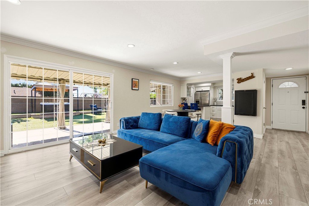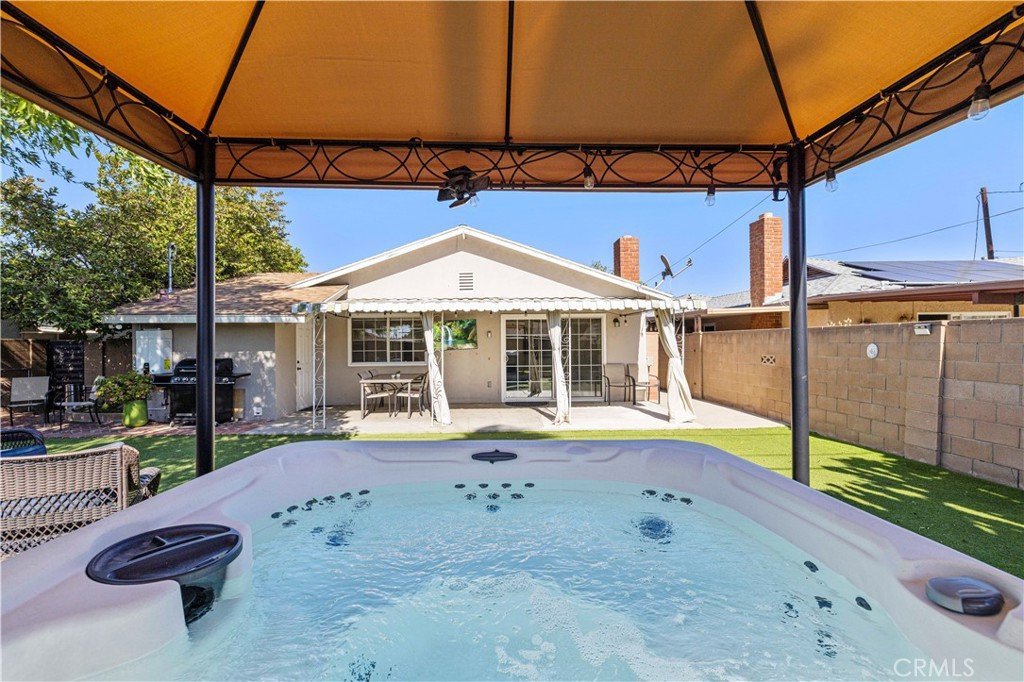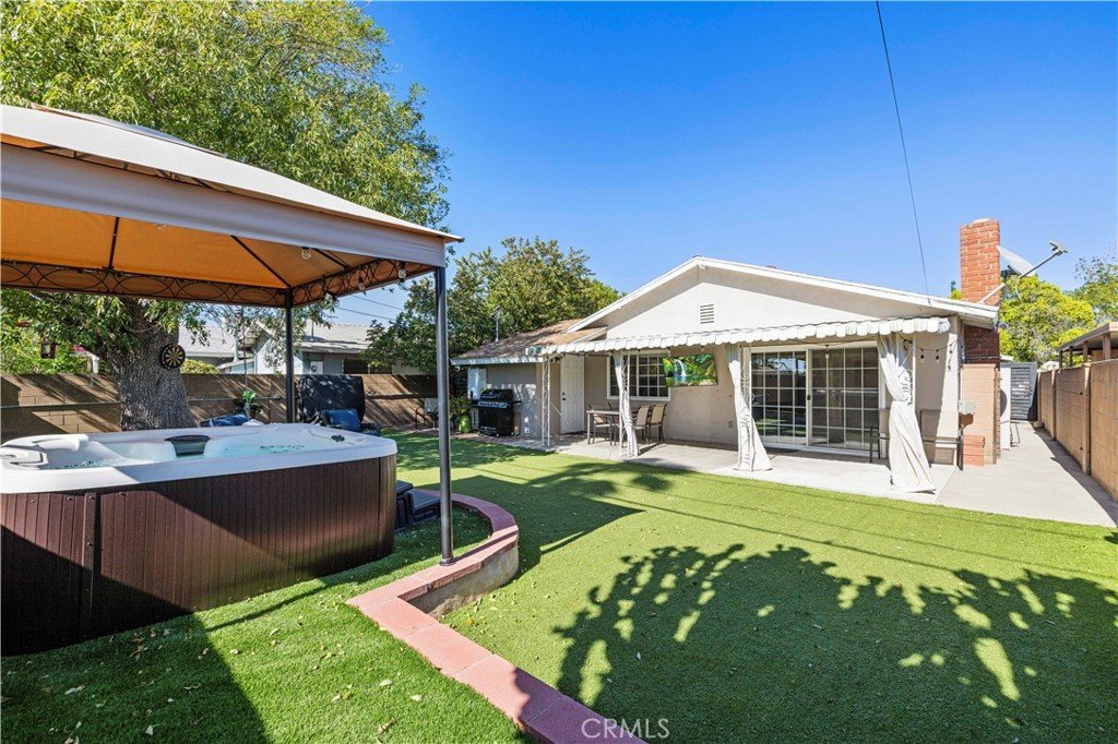 Prime gem tucked away in a quiet, desirable pocket of Sun Valley — where everyday living feels like a private retreat. From the moment you arrive, the inviting curb appeal, drought-tolerant landscaping, and charming orange tree create a warm and welcoming first impression. Inside, abundant natural light pours through expansive windows and sliding glass doors, filling the spacious living and dining areas. Lovingly maintained, this single-level home features a cozy fireplace, recessed lighting, new flooring, and an updated kitchen with quartz countertops and a breakfast bar—perfect for both daily living and effortless entertaining. The open floor plan creates a seamless flow between the living room, dining area, and kitchen. Sliding glass doors lead to your own backyard sanctuary. A covered patio, vibrant water-wise turf, native landscaping, mature guava tree, and relaxing spa create a peaceful outdoor escape—ideal for al fresco dining, entertaining guests, or simply unwinding under the California sky. Designed with comfort and efficiency in mind, the home includes a tankless water heater and EV car charger. The two-car garage offers excellent potential for conversion into an ADU, multigenerational living space, or additional income opportunity (buyer to verify). Recent upgrades include new flooring throughout, a tankless water heater, updated bathroom vanities with reglazed tubs, and a full appliance package including refrigerator, dishwasher, and washer/dryer. Additional highlights include an alarm system with cameras, coded entry access, paver driveway, EV charger, and a backyard spa with electrical outlets ready for outdoor entertaining. This 4-bedroom, 2-bath home features a spacious primary suite with a private bath and a flexible layout with income potential. Conveniently located near shopping, dining, parks, hiking trails, and freeway access—and just minutes from Burbank, major studios, and the airport—this home offers the perfect balance of peaceful retreat living and everyday convenience.