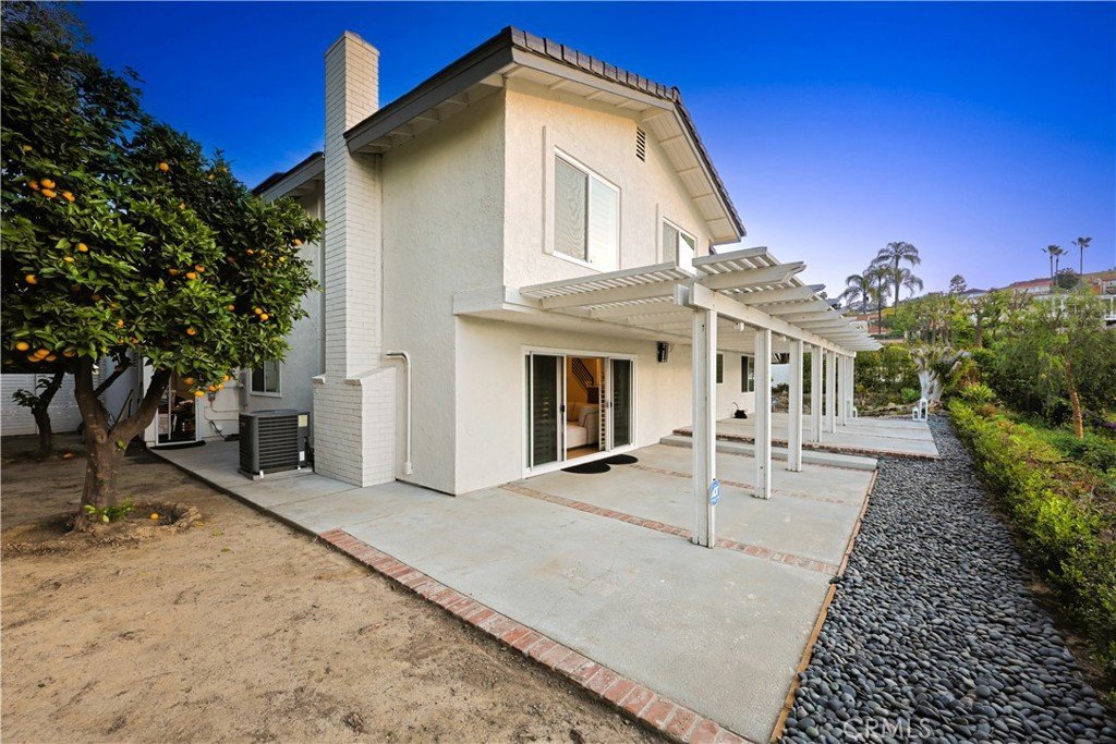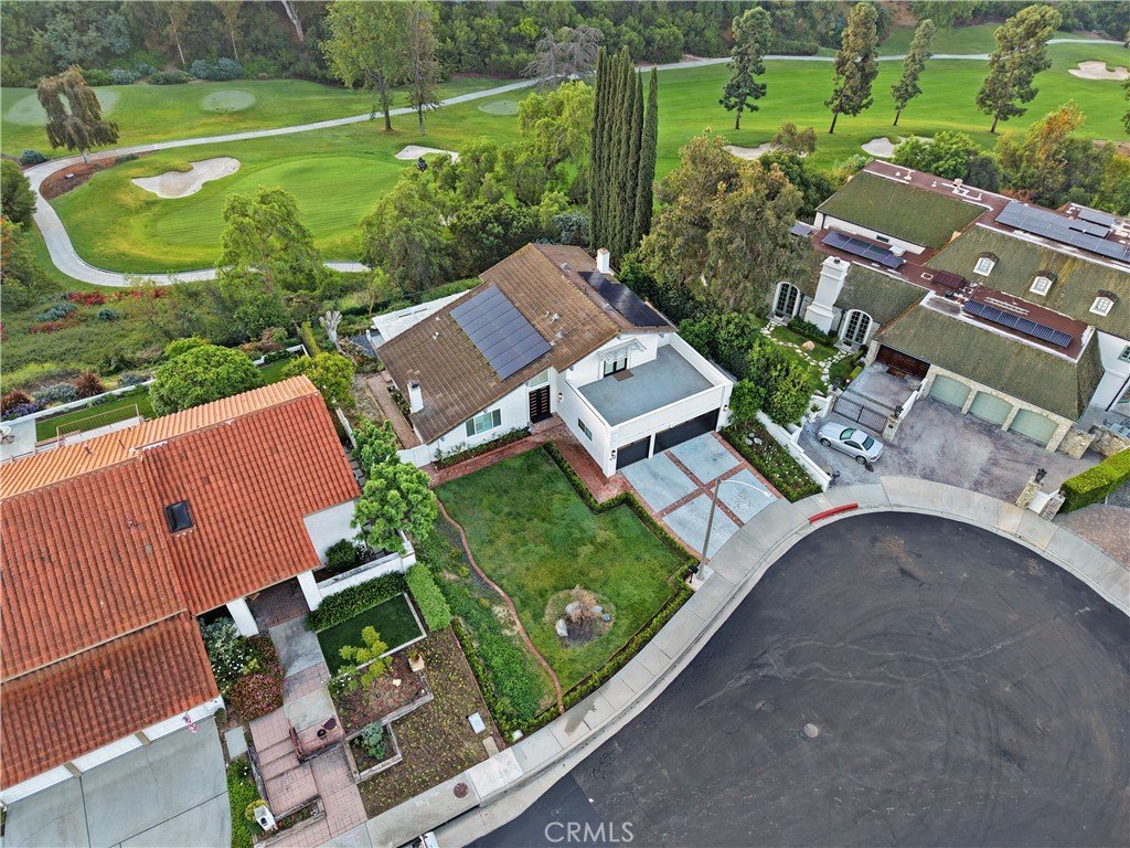 Beautiful 2-story home nestled at the end of a cul-de-sac overlooking the 5th and 6th holes of the Friendly Hills golf course. The home has an excellent floorplan with four bedrooms (1 downstairs and 3 upstairs), three updated bathrooms, 8 ft high entry doors, high ceilings in entry, living room and family room with fireplace, formal dining room, and recently remodeled kitchen with new custom cabinetry, built-in refrigerator, wide stainless steel range & oven, new dishwasher, and quartz countertops. The primary bedroom has dual closets and a large balcony overlooking the golf course. The primary bathroom includes new dual sinks and tile shower. Other amenities include paid off solar panels, new premium vinyl plank flooring throughout the majority of the home, central air and heat, and a 3 car attached garage.