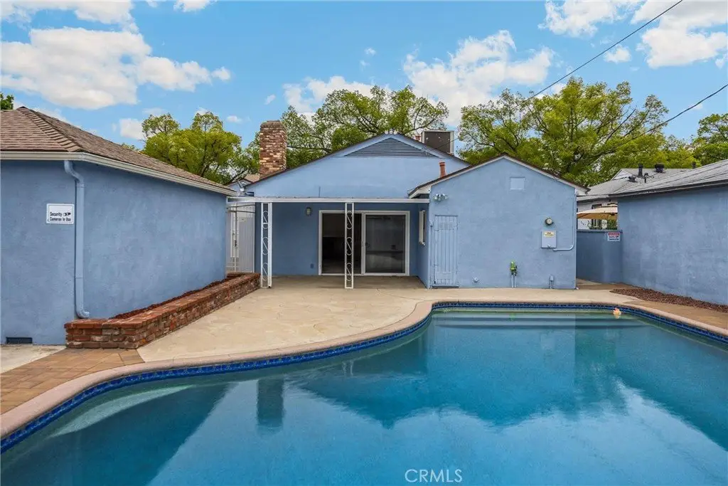 Opportunity knocks in the heart of Arleta! On the market for the first time in over 50 years, this beautifully maintained single-level gem is brimming with potential and ready for your personal touch. Nestled on a quiet, tree-lined street, this home is designed for both comfortable living and seamless entertaining with 3 bedrooms, 2 bathrooms, a versatile bonus room, a dedicated dining area, and an oversized den—all situated on a generous 6,650 sqft lot. Step into a bright and welcoming living room filled with natural light from a picturesque bay window, perfect for a cozy reading nook. Just off the foyer, the bonus room features a built-in dual desk and cabinetry, ideal for a home office or playroom. Down the hall, you’ll discover 3 bedrooms including a primary suite tucked at the rear of the home for added privacy and complete with an en-suite bathroom and dual vanity. Tying the layout together, the den offers a warm and inviting space for gatherings with its exposed brick, cozy gas fireplace, built-in shelving, and sliding glass doors leading to your private outdoor oasis. The expansive backyard showcases a sparkling 12-foot-deep swimming pool that has been thoroughly updated, boasting new rebar, concrete, plaster, and equipment. A spacious covered patio creates the perfect setting for al fresco dining, summer gatherings, or simply relaxing poolside. This home features original hardwood floors, central AC, copper plumbing, two water heaters, ample guest parking, and a newer 30-year roof installed in 2018. With low maintenance landscaping throughout, an oversized gated driveway perfect for RV parking, and a detached two-car garage offering excellent ADU potential, this property combines functionality with opportunity. Conveniently located near shopping, dining, and entertainment, and just minutes from several family-friendly parks equipped with sports fields, gyms, tennis courts, and playgrounds, this home truly has it all. Don’t miss this rare opportunity to reimagine a cherished home in one of Arleta’s most sought-after neighborhoods—bring your vision and make it yours!
