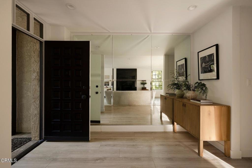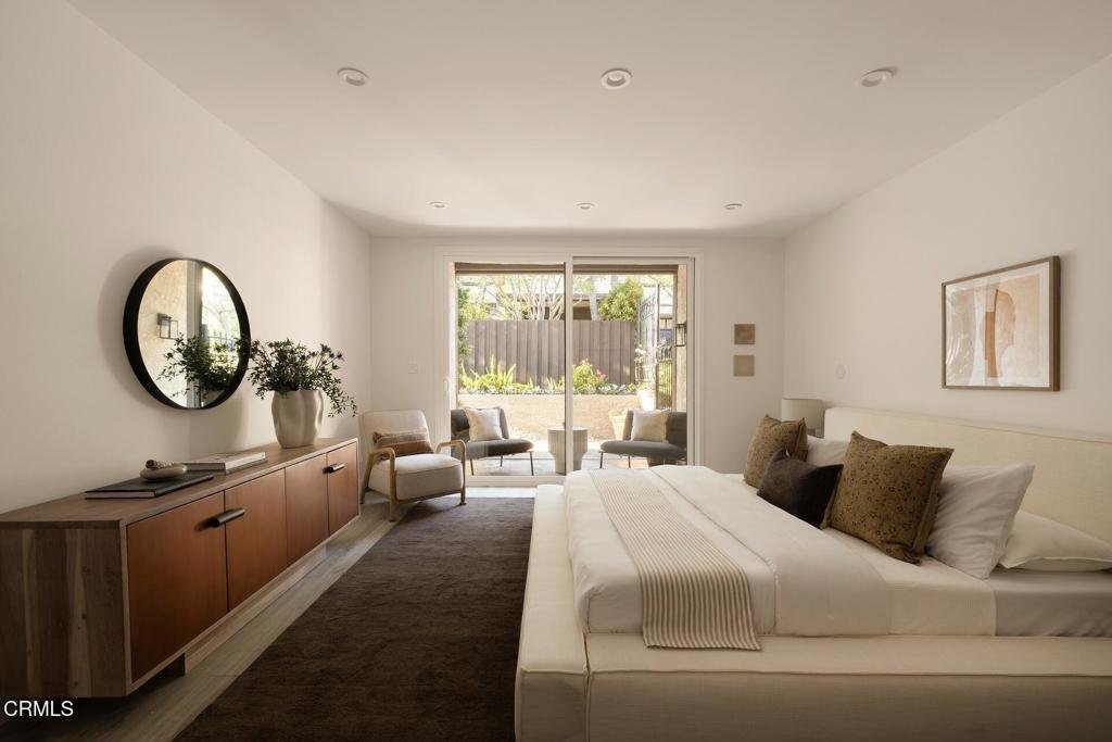 Refined. Private. Unexpected.An extraordinary offering within one of the area's most coveted gated enclaves, this bespoke, reimagined single-level* townhome delivers the rare balance of architectural pedigree and modern ease. Ideally positioned as a ground-floor corner residence, it lives with remarkable privacy--only one shared wall and a quiet, tucked-away presence that feels worlds apart.Originally designed by noted architect Bob Ray Offenhauser, the home has been thoughtfully transformed into a sophisticated, open-concept retreat. Every detail has been elevated--clean lines, curated finishes, and a seamless flow that makes daily living feel effortless and entertaining second nature.A private two-car garage with direct access, dedicated laundry, and exceptional storage--virtually unheard of at this level--underscore the home's practicality, while a newly installed stair-lift offers true single-level living from garage to residence.The outdoor experience is equally compelling. A generous, secluded patio--anchored by a striking fountain and framed by mature landscaping--creates a tranquil extension of the interior. Just beyond, a sunlit balcony off the kitchen captures leafy, serene views, blurring the line between indoors and out.The kitchen is both sculptural and functional, appointed with quartz surfaces, premium stainless appliances, custom cabinetry, and a sleek tile backsplash. The primary suite opens directly to the patio through oversized sliding doors and offers a spacious walk-in closet and spa-inspired bath with a glass-enclosed shower and sculptural soaking tub. A light-filled secondary bedroom enjoys treetop outlooks and its own beautifully appointed bath.Throughout, living and dining spaces are bathed in natural light, with windows that frame greenery from every angle--creating an atmosphere that is both calm and refined. Enhancements include upgraded LED lighting, a reimagined fireplace surround, newer water heater, and extensive system and cosmetic improvements.Moments from fine dining, boutique retail, and the scenic trails of the Arroyo Seco, the setting is as convenient as it is picturesque--lush, established, and quietly prestigious.A rare, turnkey residence--polished, private, and effortlessly livable.Accessed via stairs from garage or stair-lift to the single-level residence and gardens.