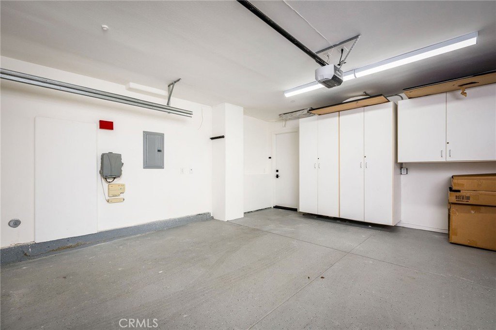 The top floor was structurally redesigned by an engineer, incorporating steel beams to create a dramatic, fully open great room. This expansive space showcases panoramic, unblockable ocean, Palos Verdes, Catalina Island, and sunset views from both the interior and the 24’ x 7’ deck, finished with custom exterior porcelain tile for seamless indoor-outdoor living. The gourmet kitchen features Thermador appliances, Dolamite quartz countertops and peninsula with bar seating, and designer lighting fixtures throughout. A fireplace anchors the living area, while custom modern glass railings enhance the clean architectural lines and preserve the views.