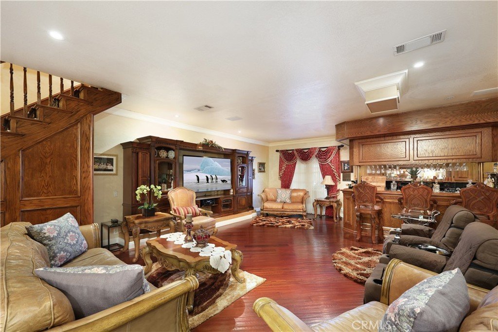 Located in the highly desirable North Downey neighborhood, this spacious 5 bedroom, 4 bathroom home blends elegance, comfort, and modern design. The home has impressive curb appeal with a stamped concrete driveway, stucco exterior with stone accents, a sharp tile roof, and a double wrought iron front door. The formal living room with fireplace and formal dining room create the perfect setting for entertaining or large family gatherings, while the family room features a built-in wet bar for relaxing in the evening. The remodeled chef’s kitchen showcases a large center island, premium appliances, high-end cabinetry, and abundant counter space. Top-of-the-line hardwood floors, coved ceilings, and architectural columns enhance the living areas with timeless character and modern sophistication. Upstairs, the expansive primary suite offers a private retreat with a jetted soaking tub, oversized tile shower, and dual walk-in closets. The backyard is truly an entertainer’s dream, complete with a resort-style pool and spa, fire pit, tranquil stream, gazebo, and lush landscaping with privacy trees. An impressive outdoor kitchen includes dual barbecue grills, commercial-grade hood, sink, and bar — ideal for hosting year-round. A rare opportunity to own a beautifully upgraded home on a large lot. This property is located close to the local elementary and middle school, has easy freeway access, and minutes from local restaurants and shopping.