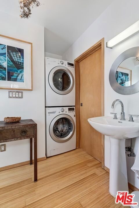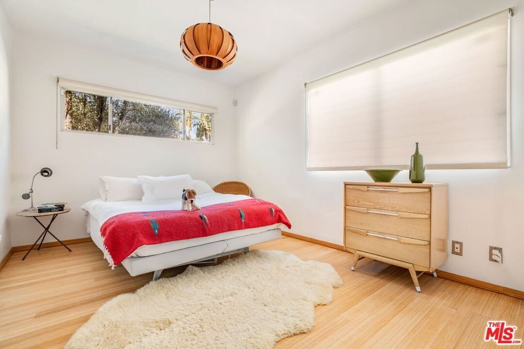 Ideally located on one of the most sought after blocks in West Hollywood West, this sophisticated residence blends modern design with subtle mid century influence. Light filled throughout, the open floor plan features skylights, bamboo floors, and custom built-ins that add both warmth and function. Two spacious bedrooms each offer en suite baths, including a generous primary suite that opens directly to the private backyard. A patio and solar-heated pool create effortless indoor-outdoor living, perfect for enjoying the Southern California lifestyle. Private and serene, yet just moments from the area's best shopping, dining, and nightlife, this is a rare opportunity in a premier location.