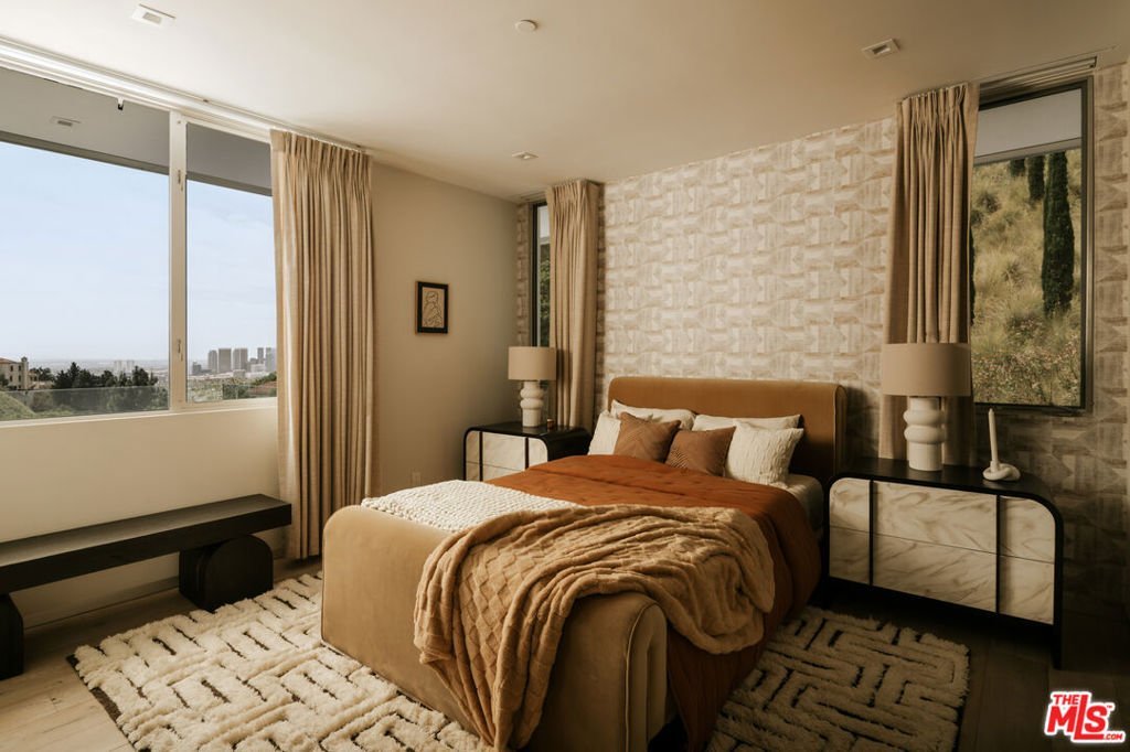 Tucked behind gates in the sought-after Beverly Hills Post Office, this striking modern estate sits on a peaceful hillside with expansive canyon and city views from almost every angle. Created for elevated everyday living and effortless entertaining, the home is filled with natural light and offers seamless indoor-outdoor flow throughout a highly functional floor plan. Spanning nearly 7,200 square feet, the residence includes six bedrooms and seven bathrooms, providing ample space for family, guests, work, and relaxation. Thoughtfully selected features enhance the experience at every turn, including an elevator, fully automated Crestron system, temperature-controlled wine refrigerator, floating glass and wood staircase, gourmet kitchen with custom cabinetry and premium appliances, multiple skylights, and numerous patios and balconies designed to showcase the incredible views. The primary suite serves as a private escape with a fireplace, walk-in closet, spa-inspired bathroom, and its own terrace overlooking panoramic city vistas. Outdoors, the property is equally impressive with a spacious patio, pool and spa, outdoor grill, indoor-outdoor bar area, and expansive Fleetwood sliding glass doors that effortlessly connect the living spaces to the surrounding landscape. A grand gated driveway creates a memorable arrival while highlighting the estate's sense of privacy and distinction. Meticulously designed and constructed with exceptional attention to detail, this residence is located in the prestigious Crest Streets and a great opportunity.