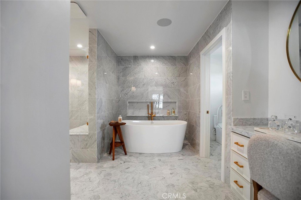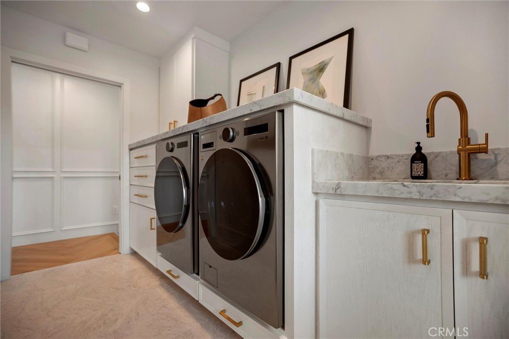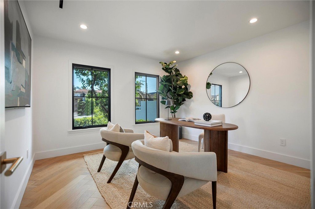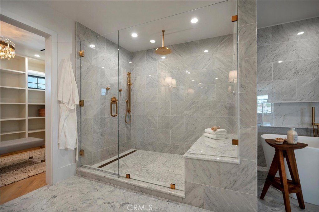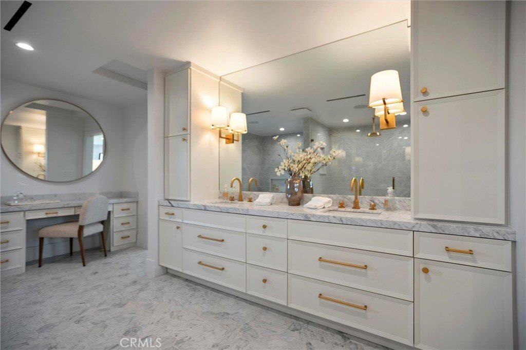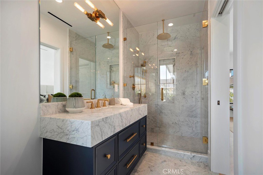 Experience the pinnacle of modern design, beauty, and functionality in this completely rebuilt, luxury residence nestled in the coveted North Downey neighborhood. This four-bedroom, four-bath (one full, three three-quarter) home exemplifies the latest in custom homebuilding, with high-end finishes and thoughtful details at every turn. As you step through the grand foyer, sunlight pours through Windsor metal-framed windows, illuminating custom millwork and herringbone wood flooring that set the stage for refined living. Formal living and dining rooms provide an elegant backdrop for entertaining and just beyond, the kitchen anchors the center of the home with striking architectural presence—designed for both performance and style. It features a dramatic marble waterfall island, premium, built-in Wolf and Sub-Zero appliances, a spacious walk-in pantry, and a bright breakfast nook overlooking the backyard oasis. An adjacent wet bar stands ready for crafting cocktails, and a nearby main-level laundry room adds everyday ease. For ultimate comfort and privacy, the residence offers a rare dual-suite layout. Upstairs, the expansive primary suite is a private retreat unto itself—step out onto your balcony for morning coffee, unwind in the cozy sitting area, or indulge in the spa-inspired bath featuring Waterworks fixtures. A custom dream closet provides boutique-like organization. Downstairs, a second luxurious suite with its own bathroom and direct pool access is perfect for guests or multigenerational living, offering resort-style comfort on the main level. The west wing of the home features two spacious bedrooms that share a designer bathroom with dual sink vanity and stone finishes. Outside, the entertainer’s backyard beckons with a sparkling pool, relaxing spa, and a covered patio ideal for al fresco dining and lounging. An outdoor-access bath adds convenience. The front yard boasts mature landscaping and a circular hand paved driveway that enhances the home’s commanding curb appeal. Every inch of this home reflects uncompromising quality—from Restoration Hardware lighting & hardware to the Presidential Shake roof. A 3-zone, HVAC system, new Control4 Automation system and a tankless water heater ensure year-round comfort and efficiency. This residence invites you to live an elevated lifestyle, where everyday moments are as luxurious as they are effortless.