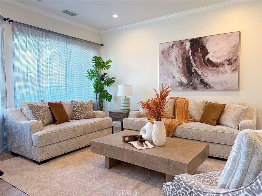 The thoughtfully designed floor plan features 5 spacious bedrooms, 4 bathrooms, a private office, and a large bonus room. Elegant formal dining, expansive living and family rooms with fireplaces provide ideal spaces for both everyday living and entertaining. The gourmet chef’s kitchen is equipped with premium Thermador appliances, including a 6-burner gas cooktop, oven, warming drawer, built-in refrigerator, wine refrigerator, dishwasher, and hood, along with a GE microwave.