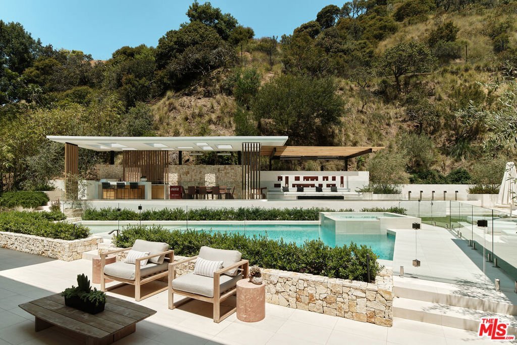 An original modernist work by acclaimed architect Charles G. Kanner, this extraordinary sanctuary has been thoughtfully updated and expanded to deliver a truly elevated living experience. Spanning 2.2 acres behind a private gated entry, the approach unfolds along a long driveway to a commanding residence positioned on Heather Road's prestigious eastern cul-de-sac, where refined amenities and forward-thinking technologies quietly enhance daily life.Arrival is marked by striking architectural canopies, setting the tone before a dramatic two-story atrium draws you into the home's primary gathering spaces. Walls of glass flood the interiors with natural light and create a seamless connection to the outdoors. At the heart of the home, a central living room is anchored by a custom built-in wet bar, while a library/theater room lined with floor-to-ceiling bookcases offers a richly layered, cozy setting. An oversized family room and dedicated office extend the living footprint further, each pairing comfortably with a private patio and access to the outdoors. An indoor-outdoor courtyard features a mature olive tree beneath a skylit canopy and flows seamlessly into the chef's kitchen and breakfast nook. Positioned at the center of the entertaining spaces, the kitchen is defined by sleek stone surfaces, custom oak cabinetry, and top-tier concealed appliances.The upper level is crowned by an exceptional primary suite, where tranquil treetop and mountain vistas wrap the room from multiple angles. A warm oak-paneled sitting room adds intimacy, along with a private balcony and serene ensuite bath - complete with a soaking tub, dual vanity, and steam shower, complemented by two generous walk-in closets. Three additional guest bedrooms complete the level, each oriented toward the home's landscaped surroundings. The residence also features a detached fitness studio that offers the flexibility to serve as a private guest retreat with its own separate entry.Outside, the experience continues at scale: an elevated pergola frames a complete outdoor kitchen with dining and lounge areas, all overlooking a beautifully positioned pool and spa. Lush landscaping surrounds the grounds, while treetop city views provide a captivating backdrop.Composed with architectural clarity and executed with the highest caliber finishes and attention to detail, this estate is also set in a prime location within top school districts, moments from Beverly Hills' premier attractions.