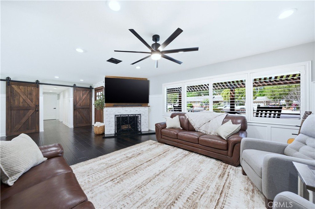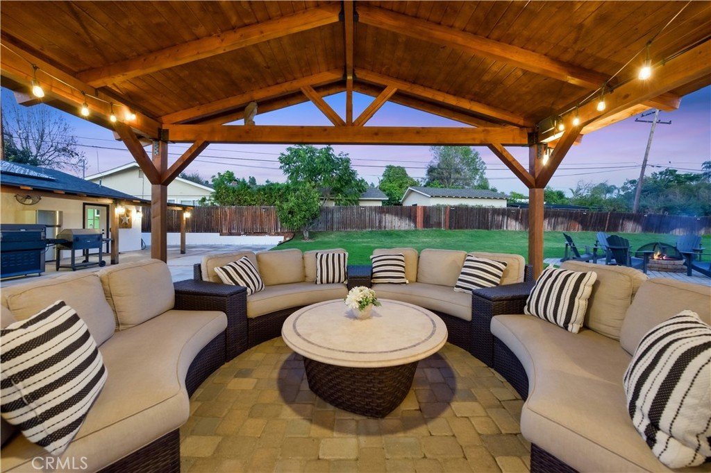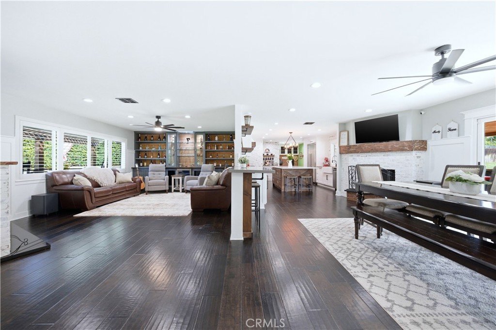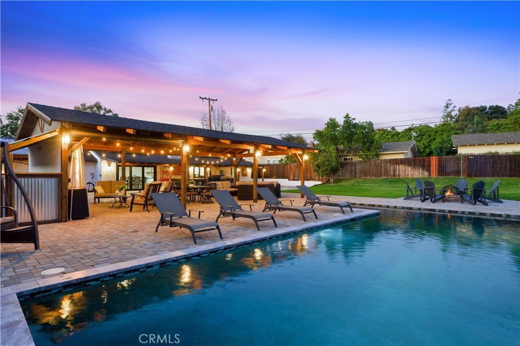 Stunning fully remodeled Friendly Hills home showcasing exceptional farmhouse curb appeal, resort-style backyard living, and an expansive lot of approximately 25,079 sq ft. This beautifully upgraded residence offers approximately 2,000 sq ft of living space with 3 bedrooms and 4 bathrooms, featuring an open-concept floor plan designed for modern living and seamless indoor-outdoor entertaining. The main living area features a fireplace, custom built-in shelving, and wainscoting throughout. Hallway privacy barn doors enhance functionality, and a split barn door in the kitchen adds distinctive farmhouse appeal. The custom farmhouse-style kitchen offers custom cabinetry with abundant storage, custom travertine countertops, a spacious island, and Viking stove, hood, and refrigerator. The kitchen opens to the main living areas and an oversized dining area, accommodating a dining table approximately 10 feet in length. Panoramic custom 9’10” tri-fold door enhance natural light and backyard views. The private backyard offers a true outdoor retreat, featuring an upgraded resort-style pool with PebbleTec finish, waterfalls, custom lighting, new hardscape, elevated deck areas, and a Baja shelf (tanning ledge) ideal for in-water lounging. The pool is designed with 4-foot depths on both ends and a 6-foot center section. The backyard patio is finished with pavers for a refined entertaining space. Designed for entertaining, the detached covered patio (approx. 684 sq ft) includes ceiling fans, built-in lighting, outdoor roller shades, and a designated wall for mounting entertainment equipment and a TV, creating a seamless indoor-outdoor experience. The grounds include mature fruit trees and garden areas, including combo apple trees (Anna, Fuji, Gordon, and Dorsett varieties), peach, guava, pear, pomegranate, apricot, and plum trees, along with eight large vegetable/fruit beds. Additional features include a 2-car garage, spacious yard with abundant possibilities, and location in the desirable Friendly Hills community within the La Serna High School district (buyer to verify). Major upgrades include an extensive interior remodel of all rooms and bathrooms approximately 3 years ago; HVAC replaced approximately 3 years ago; plumbing approximately 80% copper with newer plastic piping primarily in bathrooms; roof with newest shingle layer installed approximately 15 years ago and a fully owned solar system with approximately 30 panels installed approximately 12 years ago.