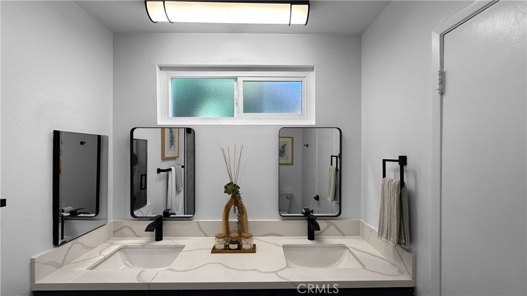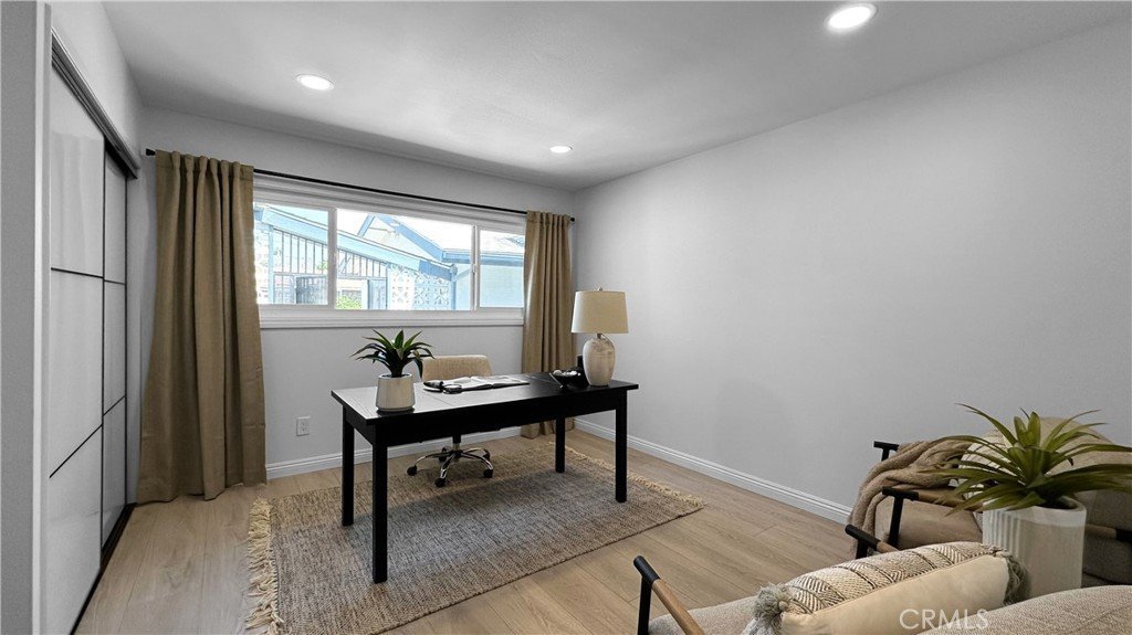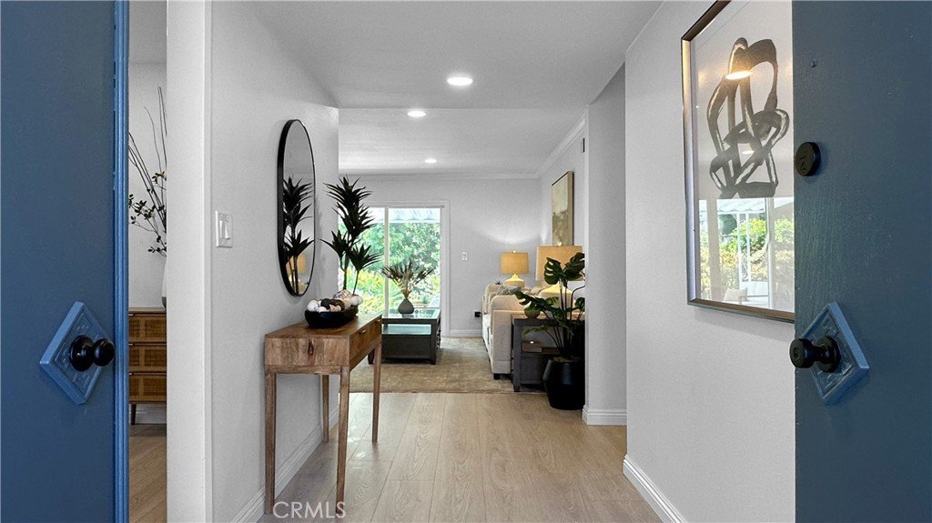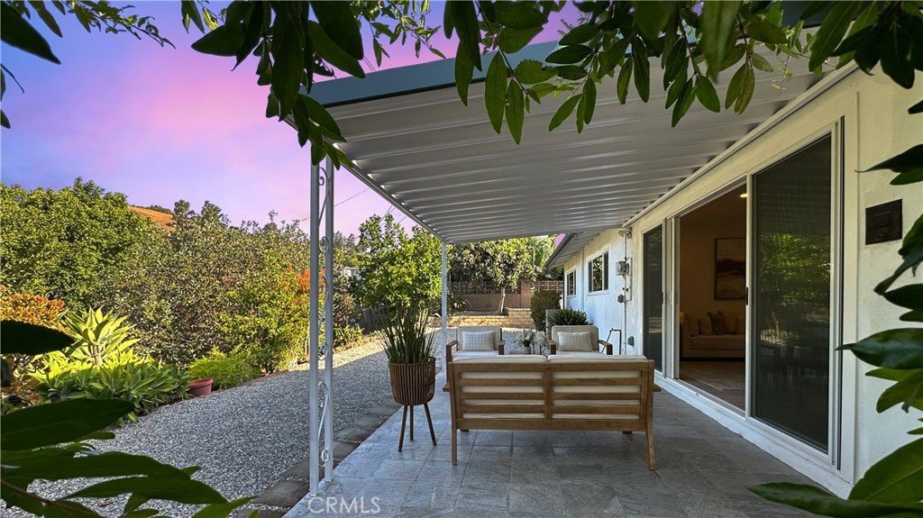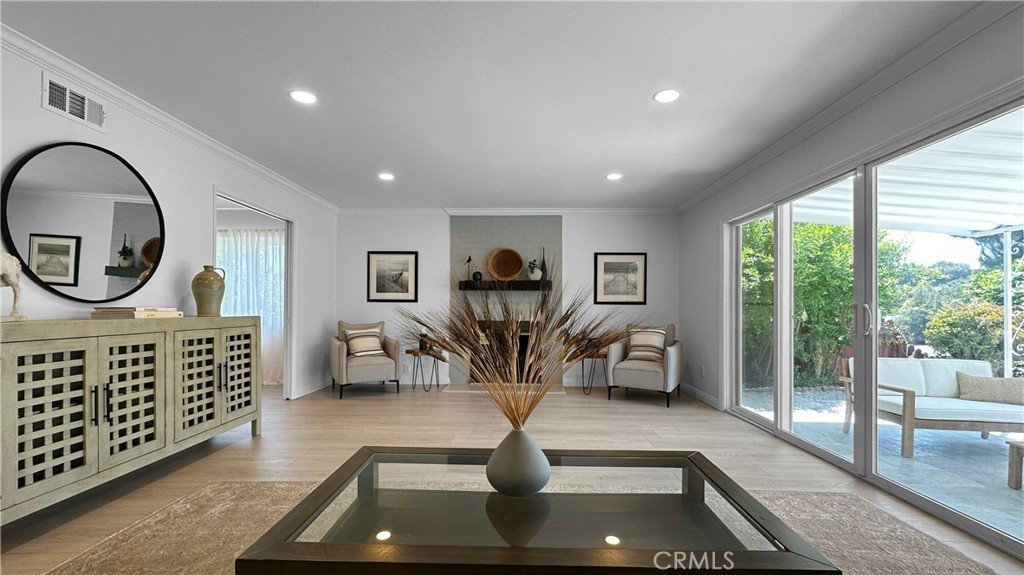 Convenient location; Wonderful home; Cozy front court yard; Open floor plan; Abundant natural light; Wood flooring; Quartz countertops; Stainless appliances; 2 dual sinks in bathrooms; Beautiful fireplace in family room; Kitchen opens to dining area; Large glass sliding door opens up to tranquil backyard; Inviting patio; Variety of fruit trees; Low maintenance yard; Laundry inside of house.