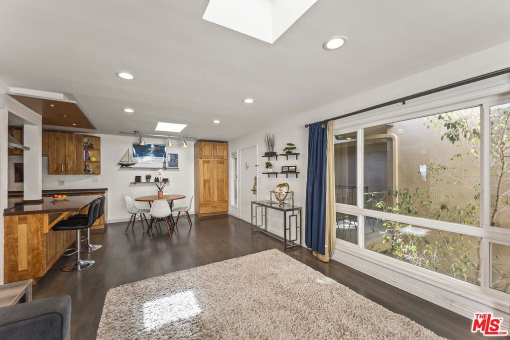 Introducing this prime West Hollywood top-floor corner residence - a beautifully designer-remodeled, move-in-ready retreat offering style, light, and exceptional comfort. Bathed in natural sunlight from three skylights, this light-filled home exudes warmth and sophistication. The stunning open-concept kitchen has been thoughtfully remodeled with sleek newer cabinetry, stainless steel appliances, glowing granite countertops, and a breakfast bar perfect for entertaining or casual dining. The spacious layout features two generously sized bedrooms with ample storage, including a serene primary suite with a private en-suite bath. Gleaming hardwood floors, newer carpet, and updated windows enhance the home's modern appeal. A convenient in-unit stacked washer and dryer adds everyday ease. Enjoy the security of a gated garage with dedicated parking and additional storage. Ideally situated adjacent to the community's resort-style amenities, residents enjoy access to a sparkling pool, relaxing spa, and lush green space creating a peaceful oasis in the heart of the city. Located just moments from West Hollywood's trendy boutiques, acclaimed restaurants, and vibrant nightlife, this exceptional home offers the very best of urban living. A rare top-floor corner opportunity - not to be missed.